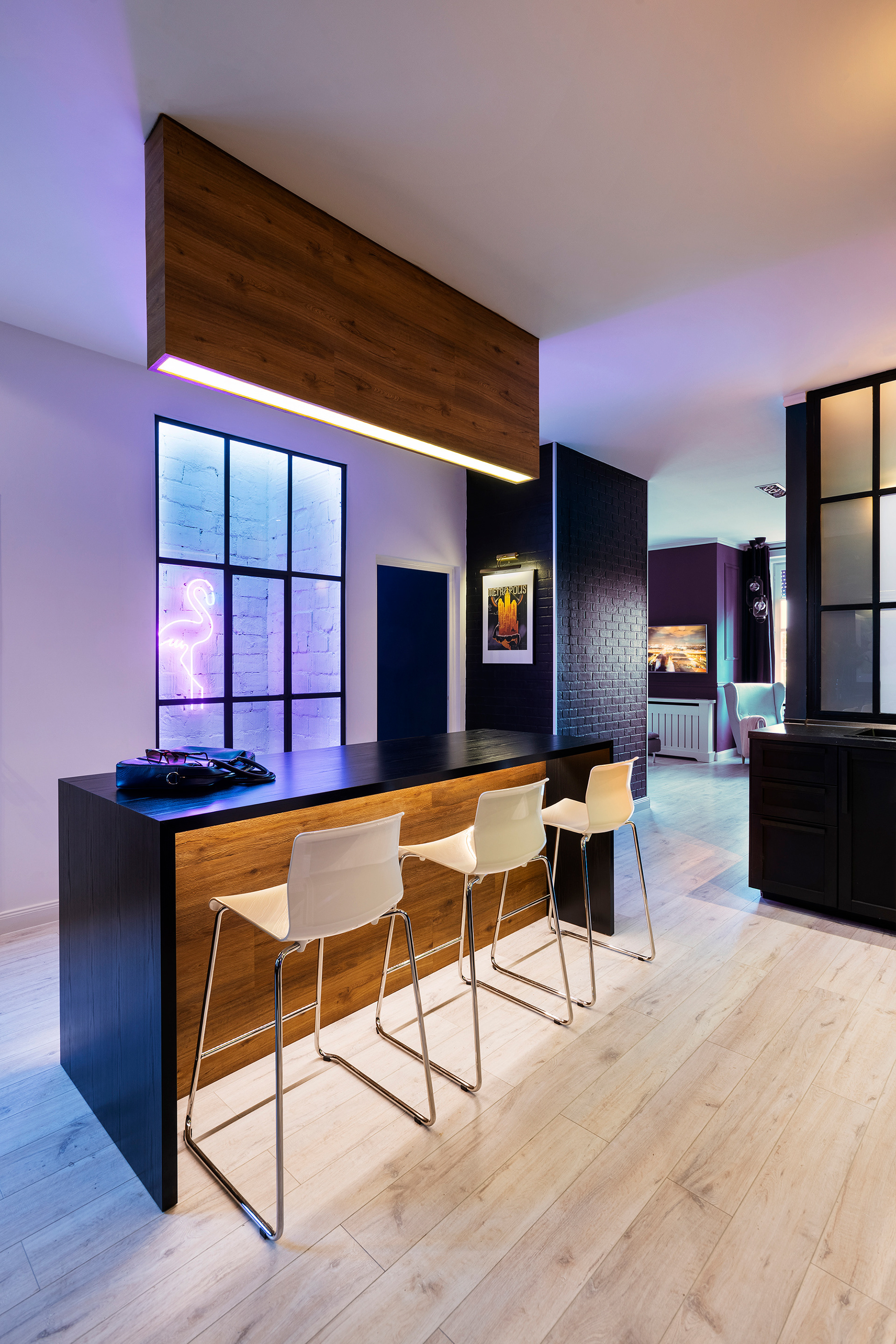 The apartment was marvelous. Adam, the host always had these lavish parties when his parents were out of town - and they were out of town a lot - sailing at lake Como or Bali - meanwhile the flat on Rakoczi turned into a heaven of desires and opportunities. The kitchen, as the 'center of social life' immediately greeted the new arrivals. Next to the impressive bar at the middle, there was a lightwell transformed to an inner smoking terrace and a reading nook, just to make it more perfect. A guest bedroom on the left and the living room could be entered from here - not to mention the main bedroom, which could only be reached by a hidden tapestry door. The layout of the apartment was simple but it was somehow mysterious and exciting in the same time. The two bedrooms had walk-in bathrooms and the living room had a brilliant terrace overlooking Rakoczi street. The interior reflected the taste of Adam's father, it had a great midcentury modern feeling on its contemporary, industrial mode. It was a feast to the eye.