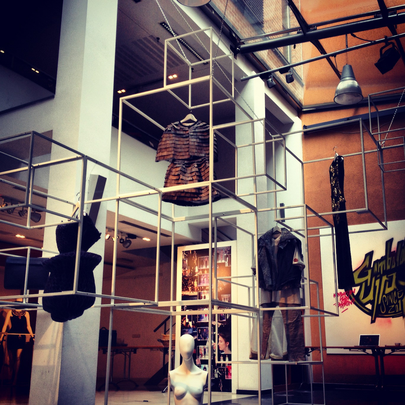 In 2012, after the success of the emerging Central European Fashion Show ( Gombold Ujra ), the organizer, Design Terminal asked us to design an installation to exhibit the winners and runner ups of the competition in The Balassi Institute, Brussels.